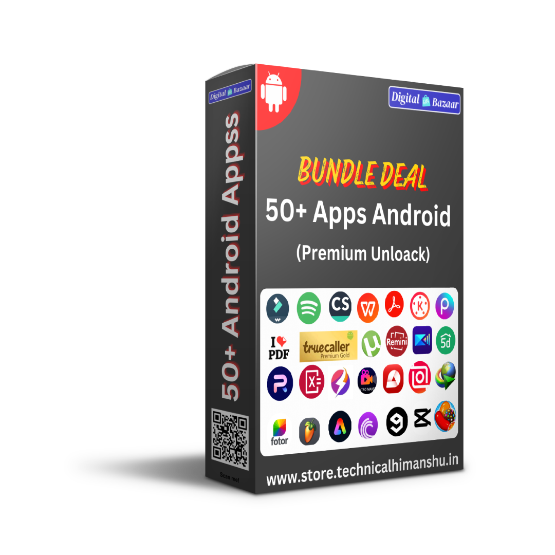 Enhance your Android experience with our 50+ Premium Android Application Bundle – Digital Bazaar. This comprehensive package includes the latest versions of top-rated apps, worth over ₹11,999. From productivity tools to creative software, this bundle ensures you have all the premium applications you need on your Android device.