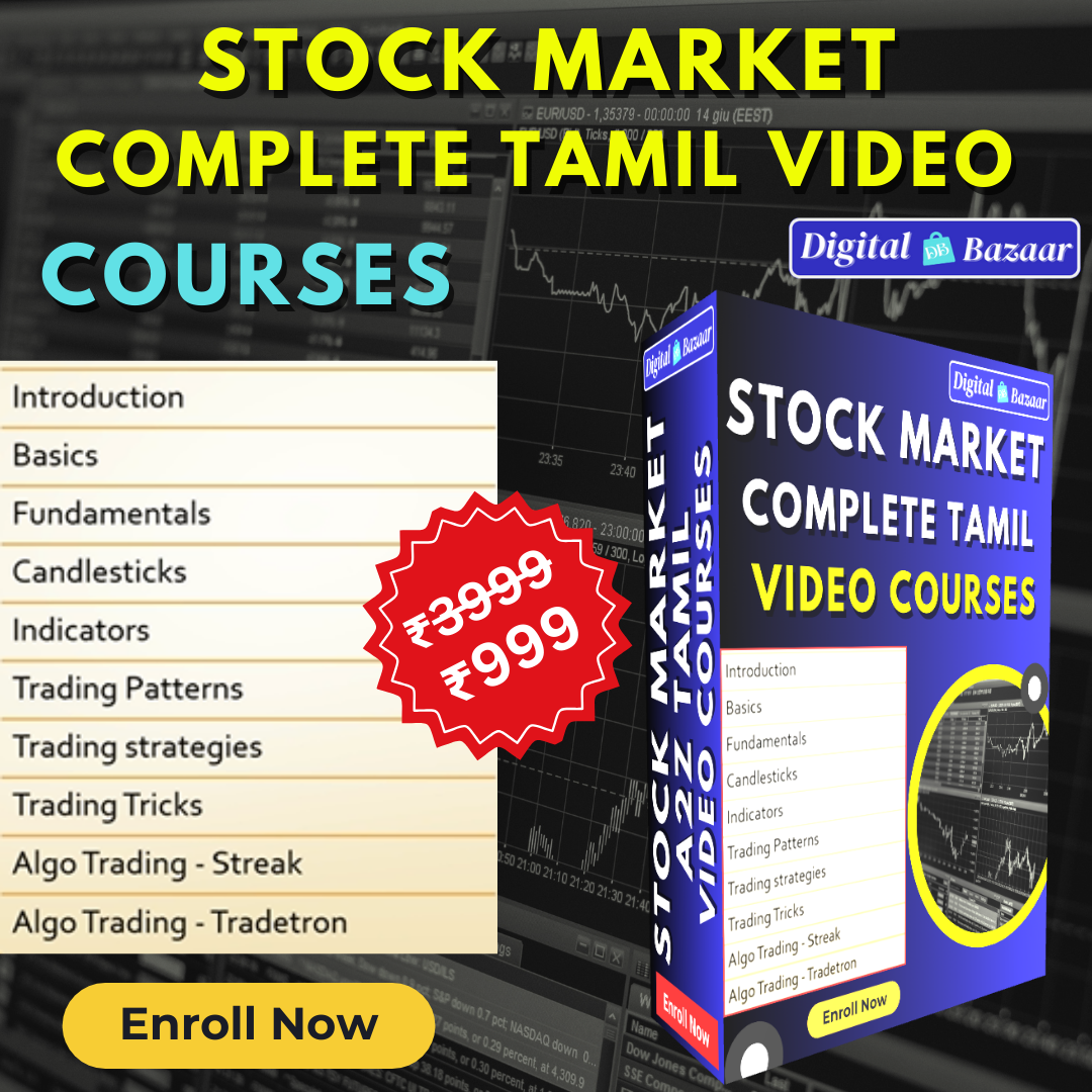 Master the stock market with our complete Tamil video course bundle. 71 lectures, 8 sections, lifetime access.